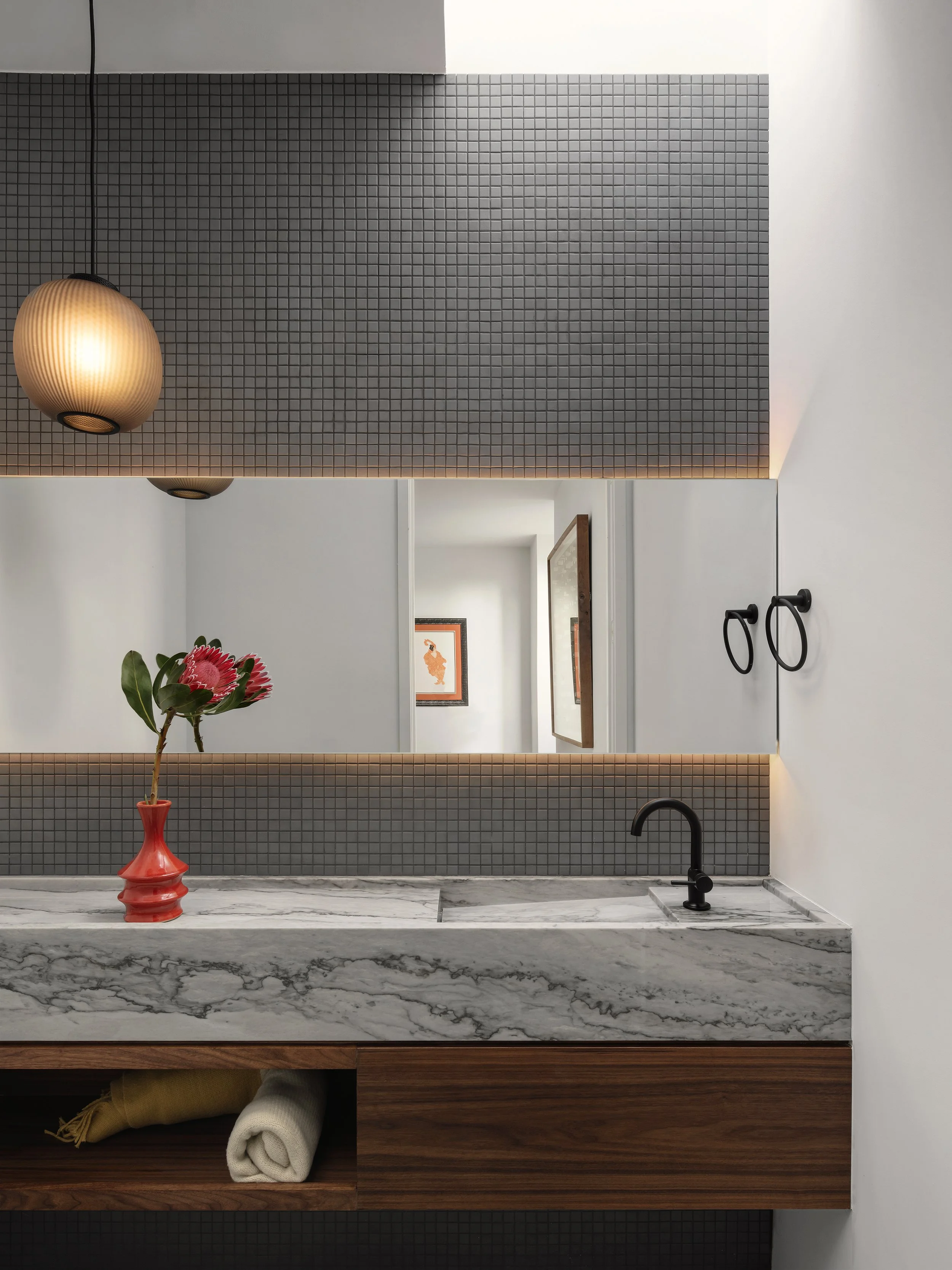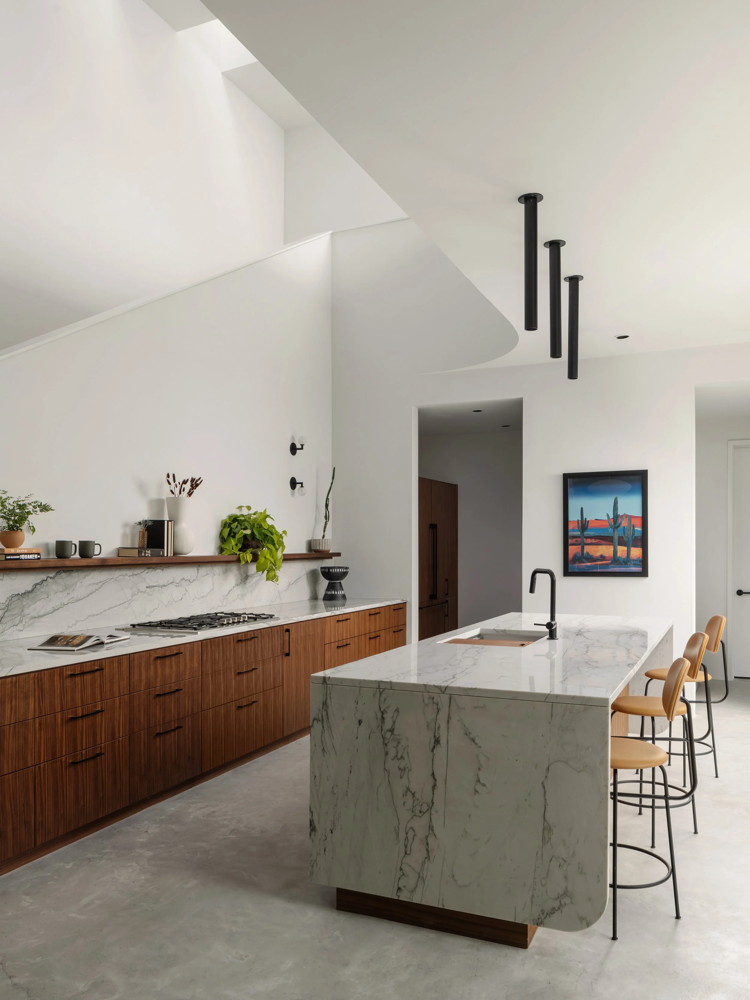 The Avenue H Residence, situated on an urban infill site, is designed to seamlessly connect indoor and outdoor spaces while prioritizing natural light and privacy. A striking double-height outdoor area anchors the design, offering an ideal space for entertaining. The open-plan living spaces flow effortlessly into the landscape, creating a perfect setting for both relaxation and hosting. The home expertly balances expansive entertaining areas with private retreats, using strategic placement of windows to invite abundant daylight, all within the context of an urban environment.